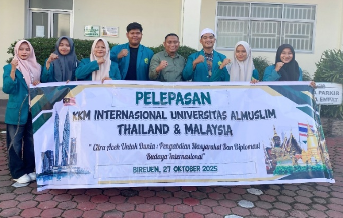 Sejumlah delapan mahasiswa Universitas Almuslim lolos mengikuti program Kuliah kerja Mahasiswa (KKM) tematik Internasional tahun 2025 ke Malaysia dan Thailand. Rektor Universitas Almuslim (Umuslim) Bireuen, Dr. Marwan, M.Pd secara resmi melepas mahasiswa tersebut, Senin (27-10-2025).