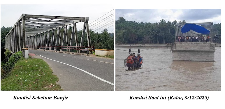 Dari keterangan M Ali Akbar, Koordinator penyeberangan Jembatan Teupin Mane, sebut Rektor, ada sekitar 200-an warga diseberangkan setiap hari, hingga rabu (3/12/2025). Cara warga diseberangkan menggunakan gondola besi yang dikaitkan ke seling atau kabel baja di lokasi jembatan putus Teupin Mane tersebut.