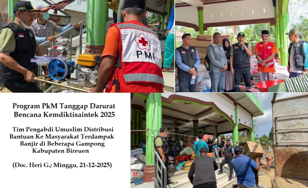Dalam kegiatan distribusi logistik terpadu untuk pemulihan awal korban banjir di gampong Pante Baro Gle Siblah yang terdapat di kecamatan Peusangan Siblah Krueng, kemarin (Minggu, 21-12-2025), tim pengabdi yang terdiri dari Dr Marwan (Ketua tim), Dr Sonny M. I. Mangkuwinata, Dr M Rezeki Muamar dan Heri Gustami, M.Kom membawa kebutuhan dasar yang dibutuhkan segera oleh warga.