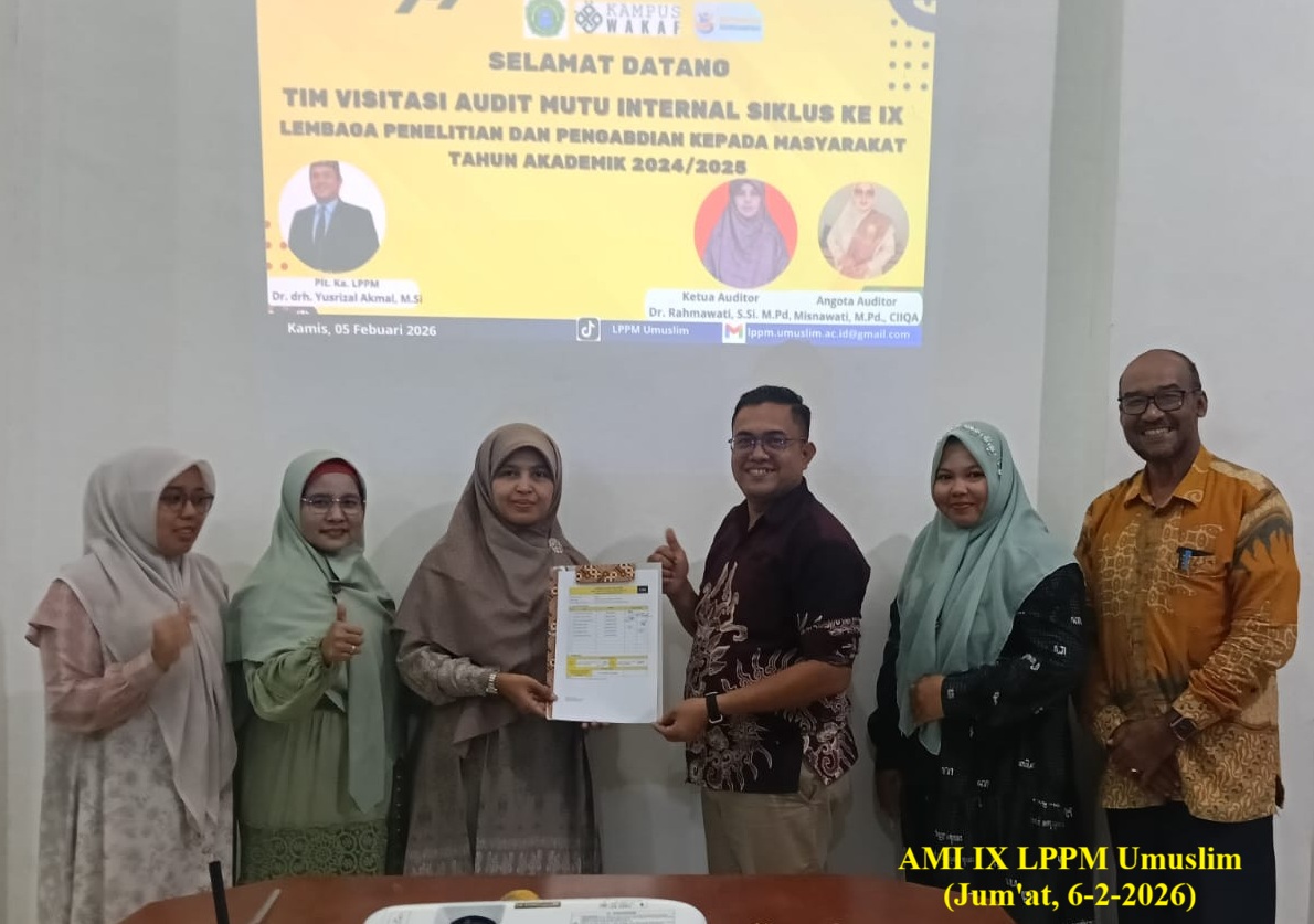 Kegiatan ini menjadi momentum strategis untuk melakukan refleksi, evaluasi, dan penguatan sistem tata kelola LPPM agar selaras dengan standar mutu internal dan kebijakan nasional pendidikan tinggi, komen Plt. Kepala LPPM Umuslim, Dr drh Yusrizal Akmal MSi (6-2-2026).