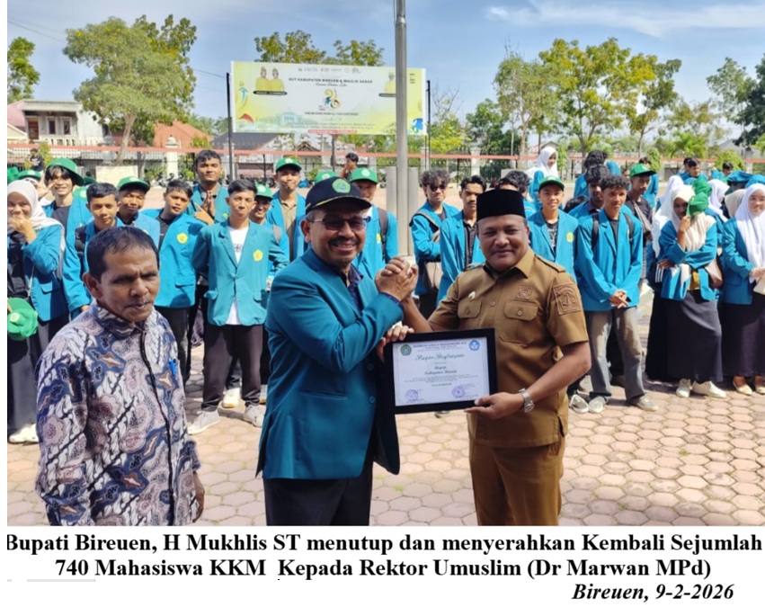 Kegiatan pengabdian mahasiswa Universitas Almuslim (Umuslim) dalam program Kuliah Kerja Mahasiswa (KKM) angkatan XXVIIItahap-II, sejak 19Jan lalu, kemarin secara resmi dinyatakan berakhir (Senin, 9-2-2026).